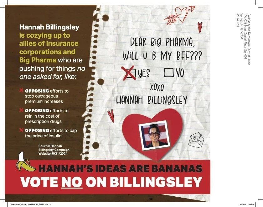 MAURA HIRSCHAUER, IL STATE LEGISLATURE CANDIDATE, Negative MAIL PIECE TARGETING HER OPPONENT