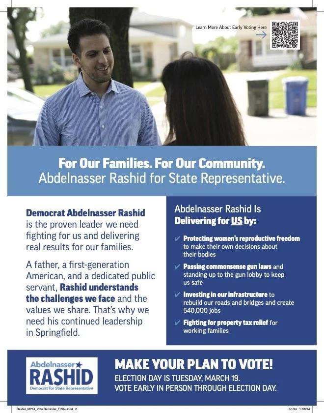 Abdelnasser Rashid, IL STATE LEGISLATURE CANDIDATE, MAIL PIECE